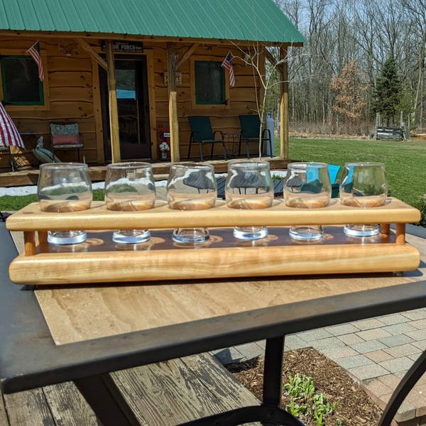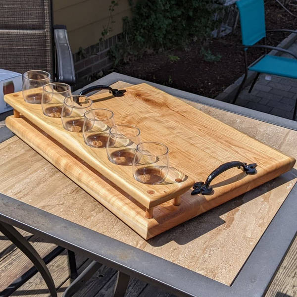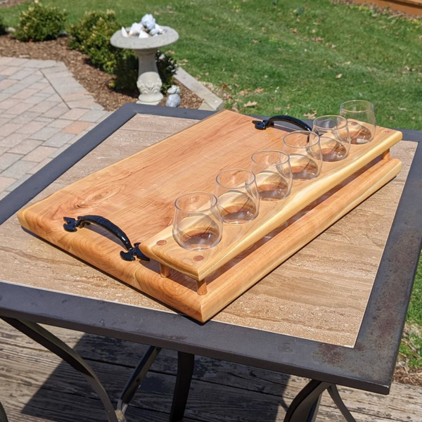 Cherry Wood Beer Flight Charcuterie Board with Taster Glasses