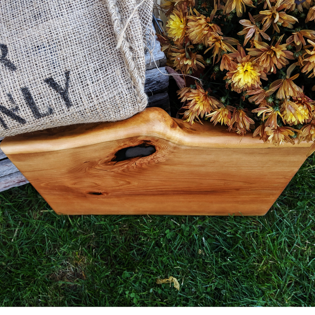 Handcrafted from live edge Cherry Wood, this Charcuterie & Cheese Board brings rustic elegance to any table.