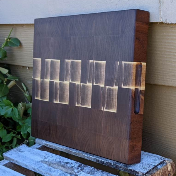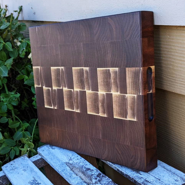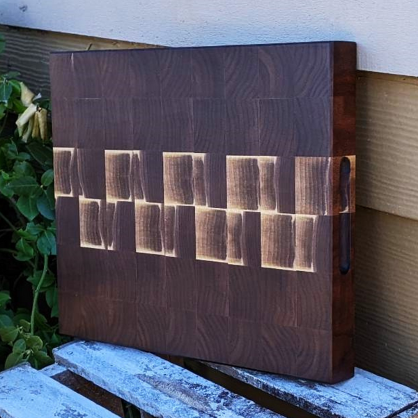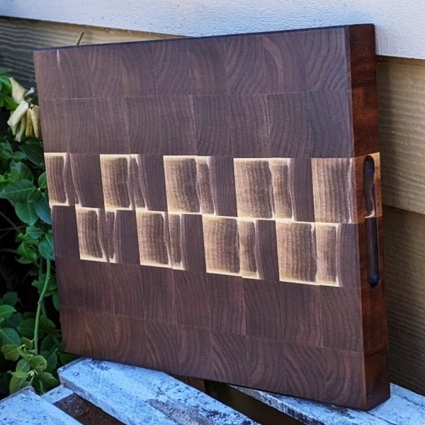 Black Walnut Wood End Grain Cutting Board with Beveled Edge