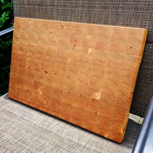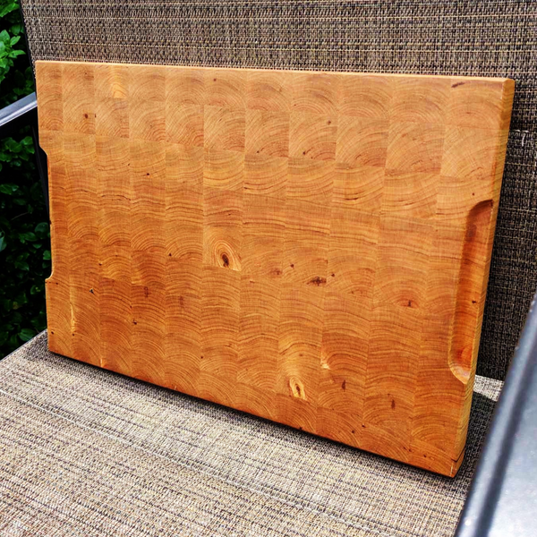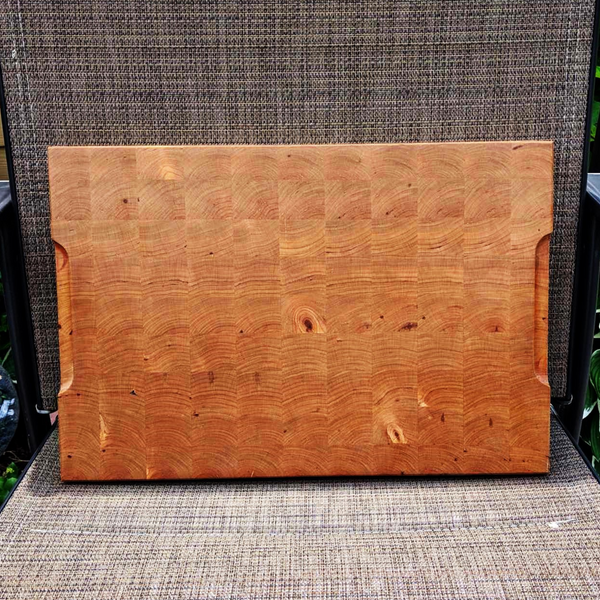 Cherry Wood End Grain Cutting Board with Hand Grooves on Sides & Beveled Edge