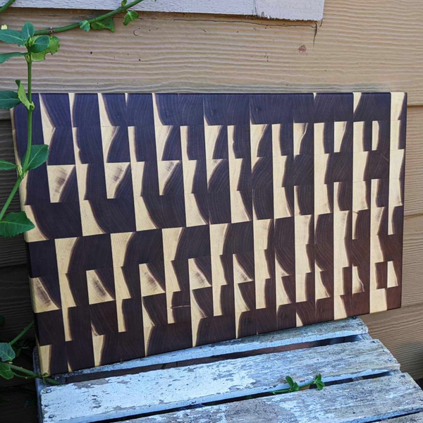 Large Black Walnut End Grain Cutting Board with Beveled Edge