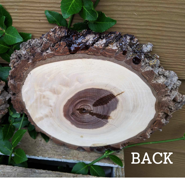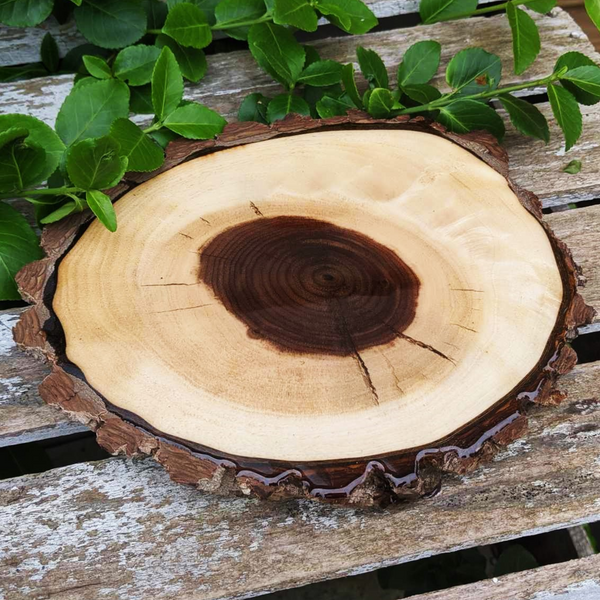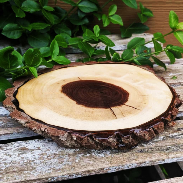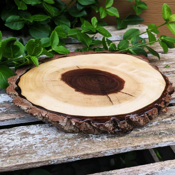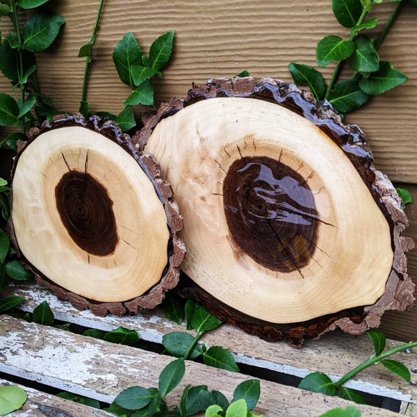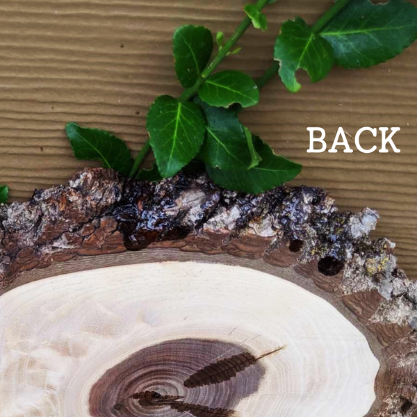 Please note: Each piece is unique! The rustic look and top-only finish mean you might find small amounts of epoxy on the back or on parts of the bark, where it has flowed into any small cracks and other natural imperfections. That’s part of their one-of-a-kind charm!