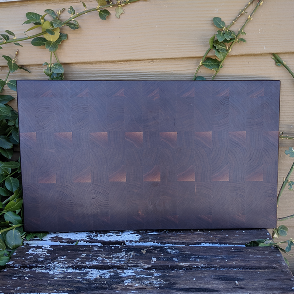 Large Black Walnut Wood End Grain Cutting Board with Beveled Edge, Wooden Butcher Board