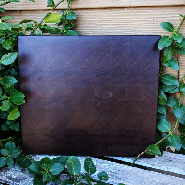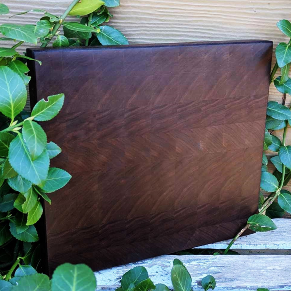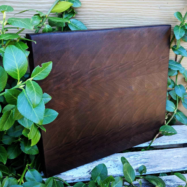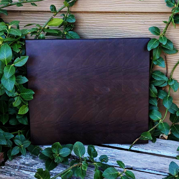 Enhance your kitchen with this gorgeous Black Walnut Wood End Grain Cutting Board. Its elegant sheen is achieved through a food grade oil and beeswax blend, making it a top choice for passionate home chefs. Elevate your cooking experience with the finest quality wooden cutting board.