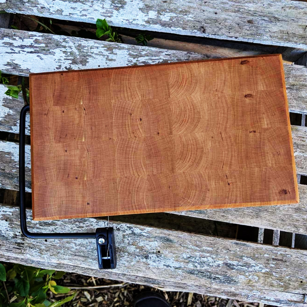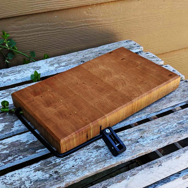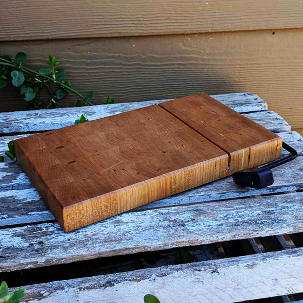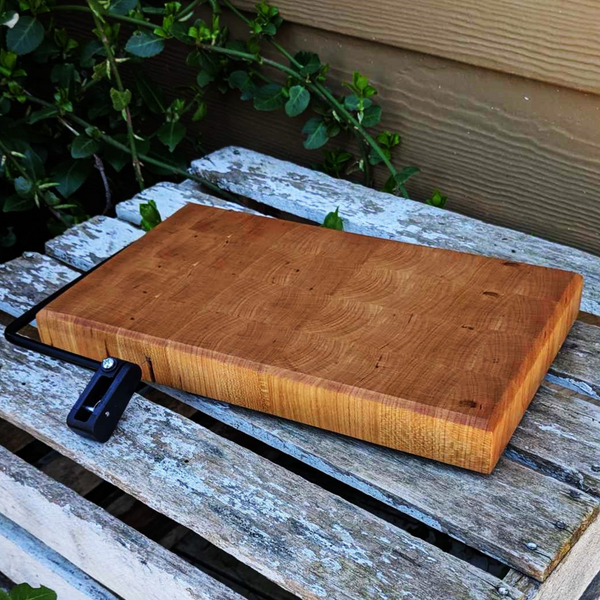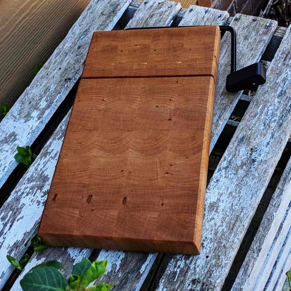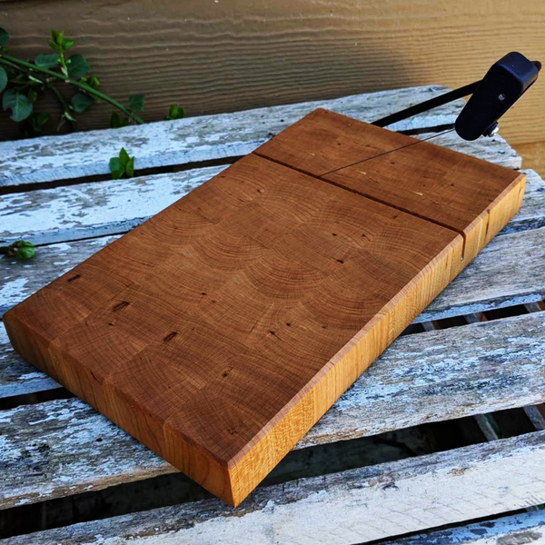 A very uniquely handcrafted end grain Cherry Wood cheese slicing board, finished in a food grade oil and beeswax mixture to give it a beautiful sheen. Its end grain design ensures lasting durability and a stunningly smooth surface. Elevate your cheese cutting game with this exquisite addition to your kitchen.