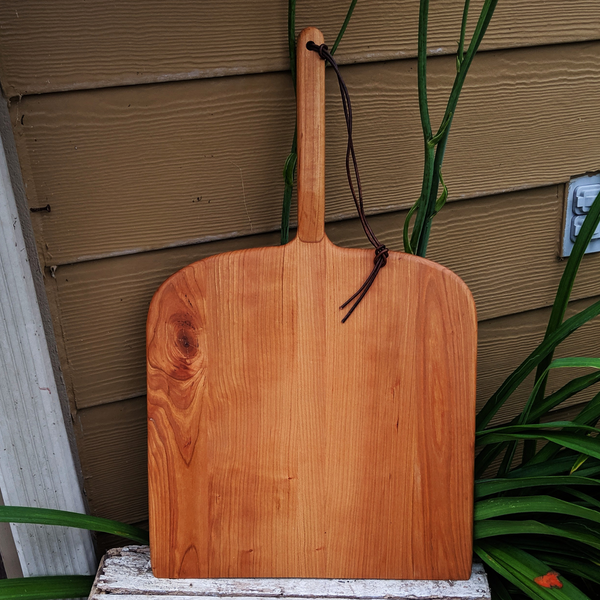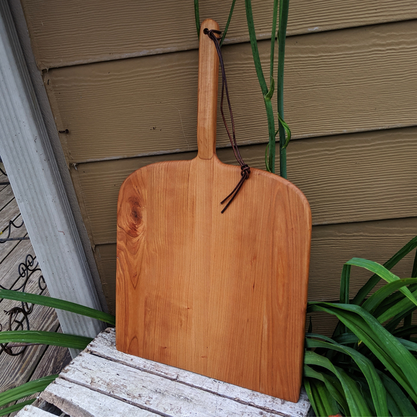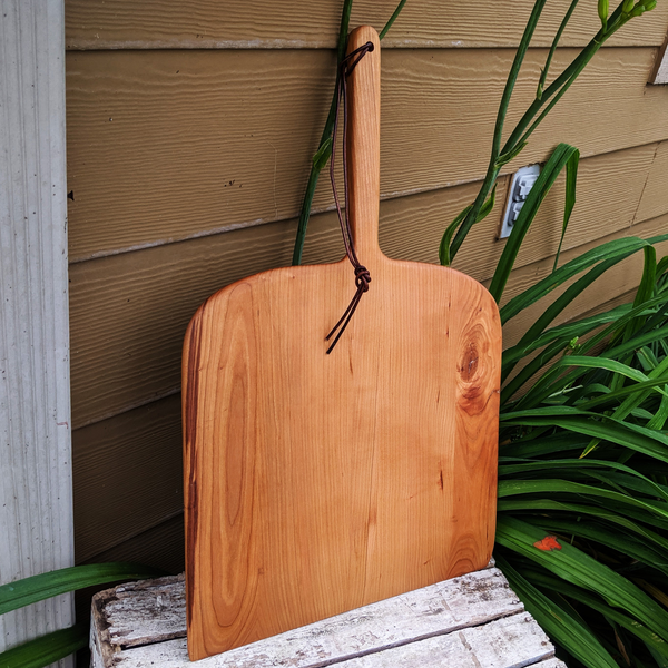 Upgrade your pizza night with this handcrafted Cherry Wood Pizza Peel, finished in a sleek satin sheen using our food-grade mineral oil and beeswax blend. The durable handle includes a convenient leather strap for easy hanging and storage, making it both functional and beautiful. Whether you’re prepping pizzas at home or in a professional kitchen, this timeless tool adds warmth, quality, and style to your setup.