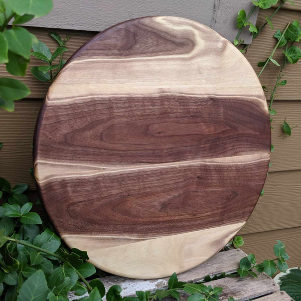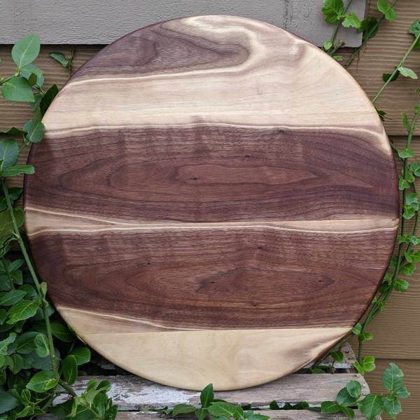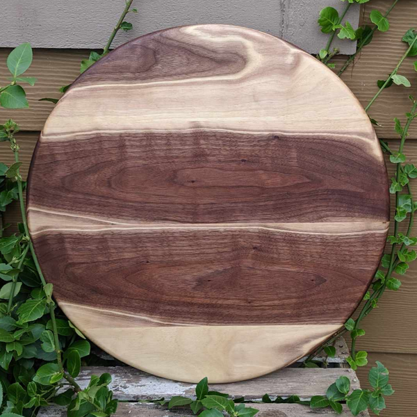 Round Black Walnut Wood Pizza Serving Tray / Round Wooden Charcuterie Platter