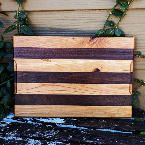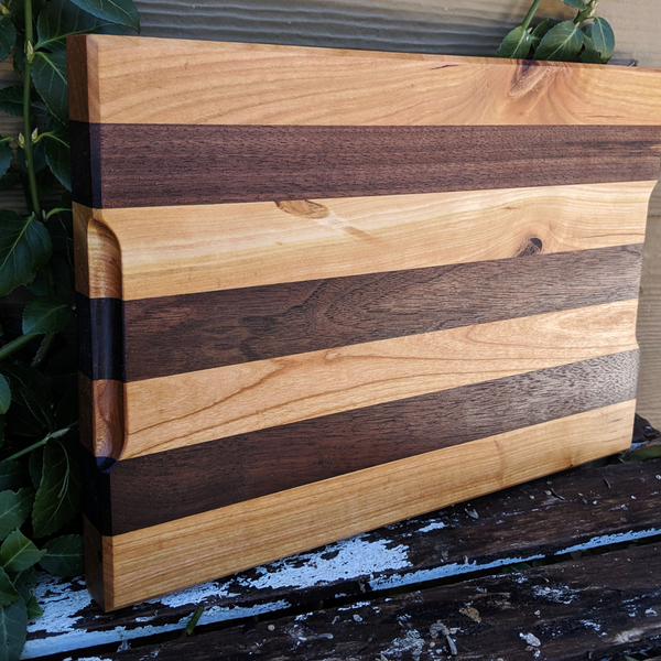 Handcrafted from premium Black Walnut & Cherry, this edge‑grain butcher block combines durability with beauty.